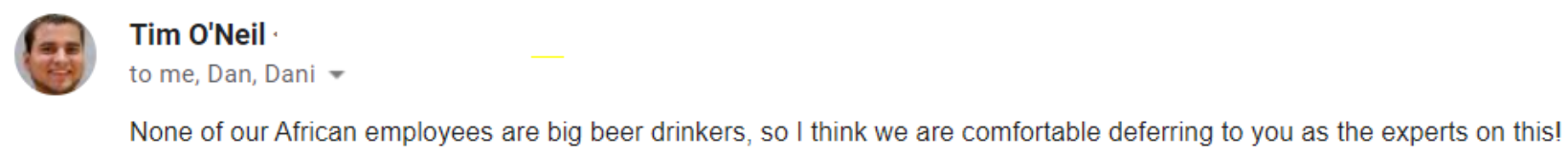 Cool. This may not look like a great start, but there’s some helpful information there - ACE’s people aren’t beer nerds! That narrows things down. We can shelf the Yirgacheffe Doppelbock and Jollof IPA for another year - we’re keeping this one simple, clean, and accessible. That is, right in our fuckin’ wheelhouse.